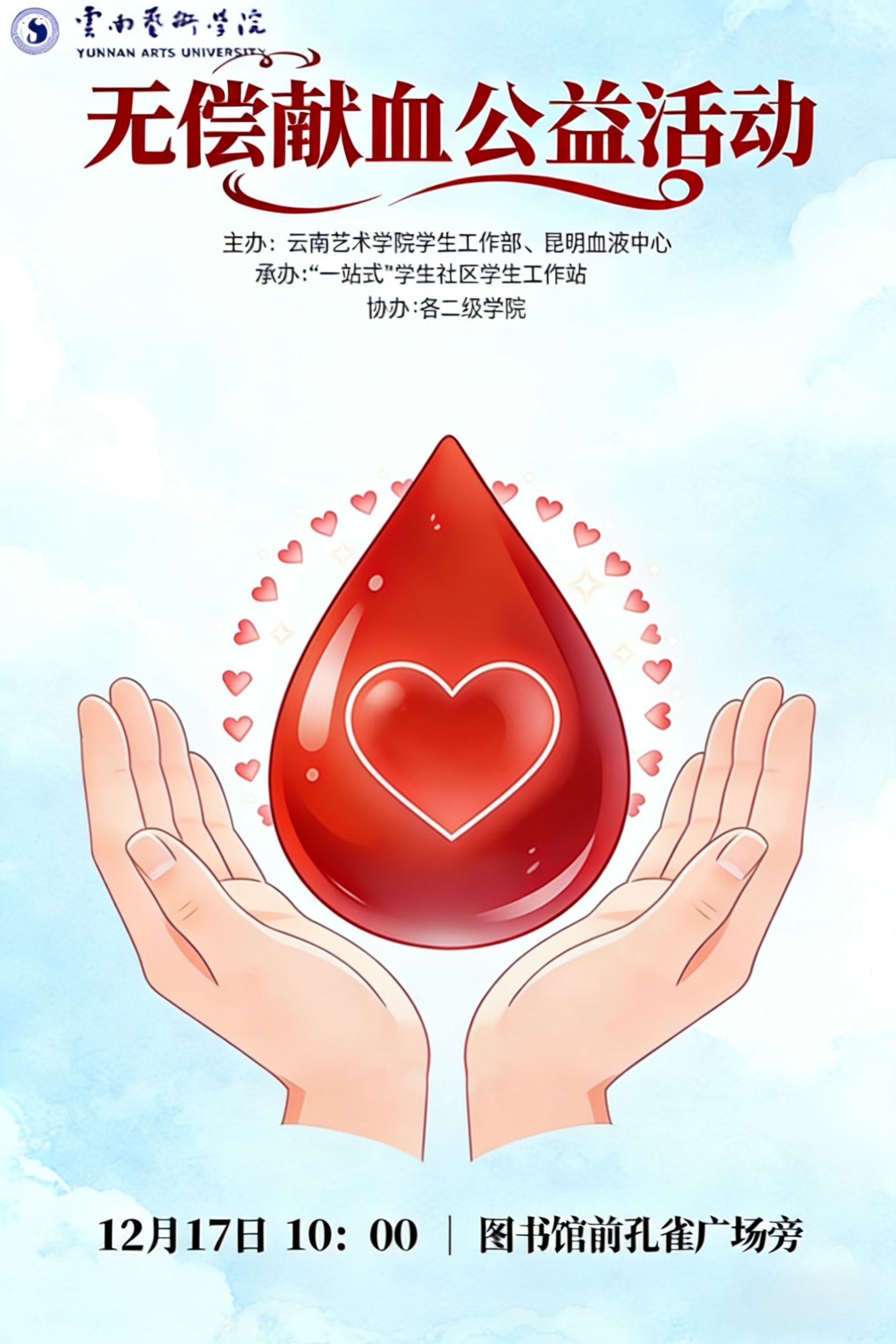 2025年12月17日10:00,云南昆明血液中心到校进行无偿献血活动,